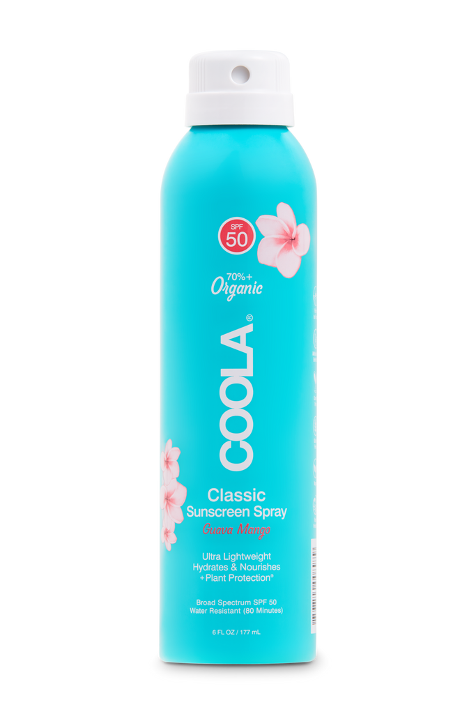 Hurray for Spray!® Spritz your sunscreen on the go with this clear and unscented continuous spray. Offering broad spectrum SPF 50 protection, this deluxe, eco-sized Farm to Face¨ sourced, the antioxidant-infused spray will nourish and hydrate skin with 70%+ certified organic ingredients like Cucumber, Algae, and Strawberry Extracts. Formulated for the rigorous demands of sport, this spray sunscreen is water resistant for 80 minutes. Have your fun in the sun and then some with COOLA!